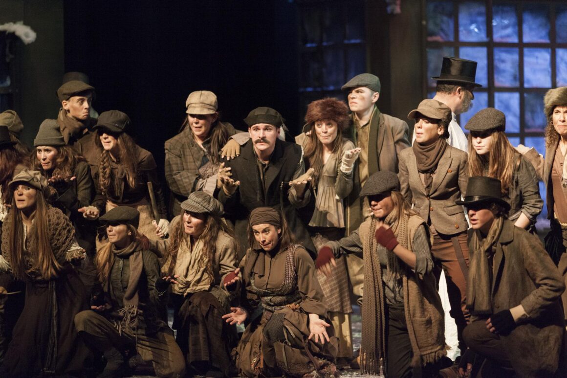 Hilerriko eszena bereziki hunkigarria suertatzen da, mamuen esku-hartzeak bezala, bereziki hirugarren espiritua, Scroogeren aitarena, funtzioaren une dramatiko ahaltsuenetako bat. Scroogeren pertsonaia, autoritate osoz, obraren ardatz bihurtzen da, hiru mamuek indartsu eutsita, bai ahotsei dagokienez, baita eszenari dagokionez ere.