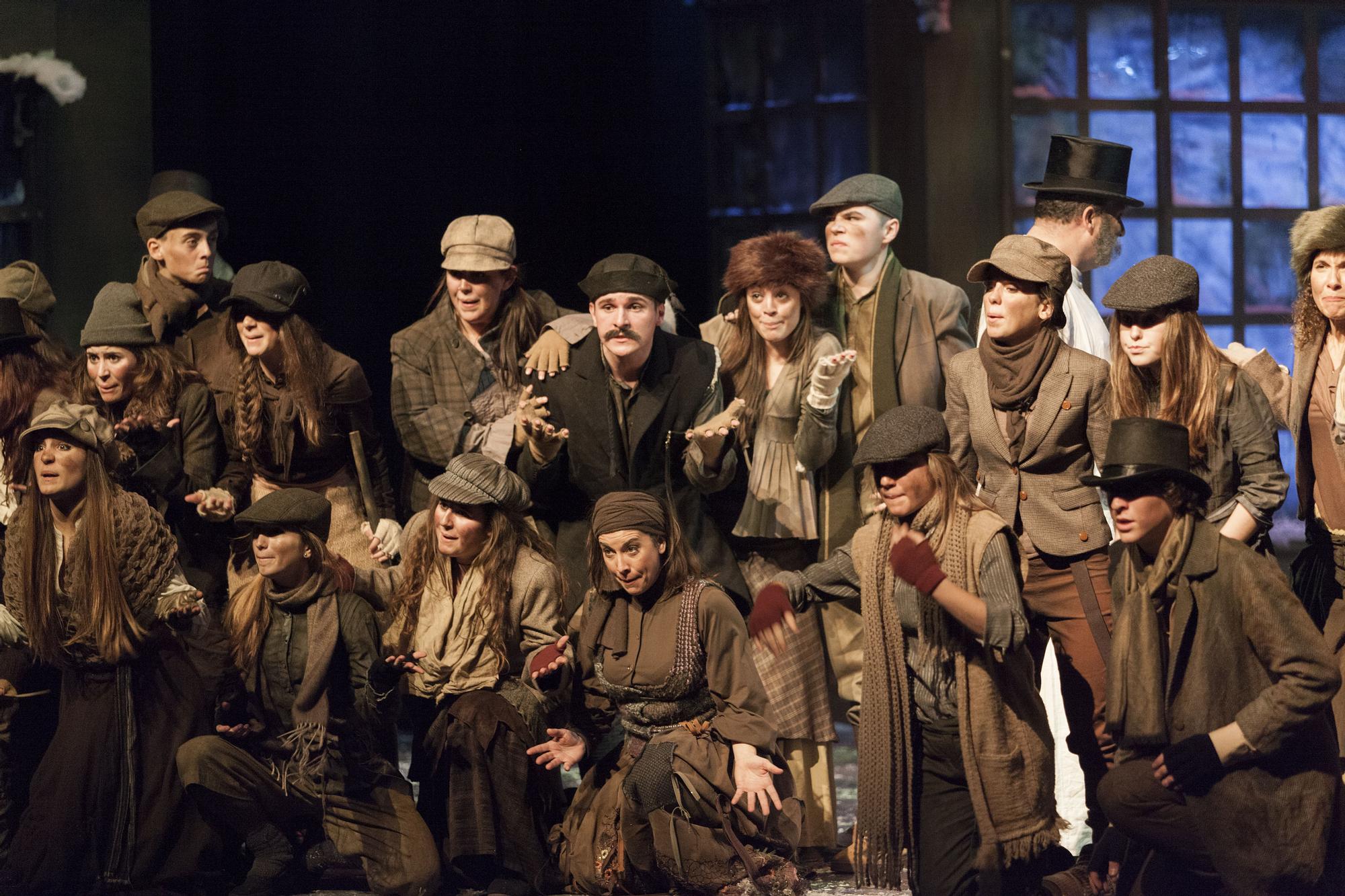 Ahotsen atalean, Alfonso García Noainek Ebenezer Scrooge zekenaren interpretazio sendoa eskaini zuen, obraren hasieratik pertsonaiari gizatasun progresiboa emanez. Harekin batera, Julen Jimenez tenoreak, Leticia Vergara mezzosopranoak eta Iñaki Fresán baritonoak gorpuztutako mamuek osatu zuten dinamismo eta presentzia eszeniko handiko laukote protagonista. Gainerako pertsonaia bakarlariek ere, Nafarroako Ganbera Operako koruek bezala, bikain bete zuten haien lana. Hala ere, eszena- eta ahots-exijentzia handieneko une zenbaitetan enpaste gorabehera batzuk hauteman ziren, ikuskizunari distira eta magiarik ebatsi ez ziotenak.